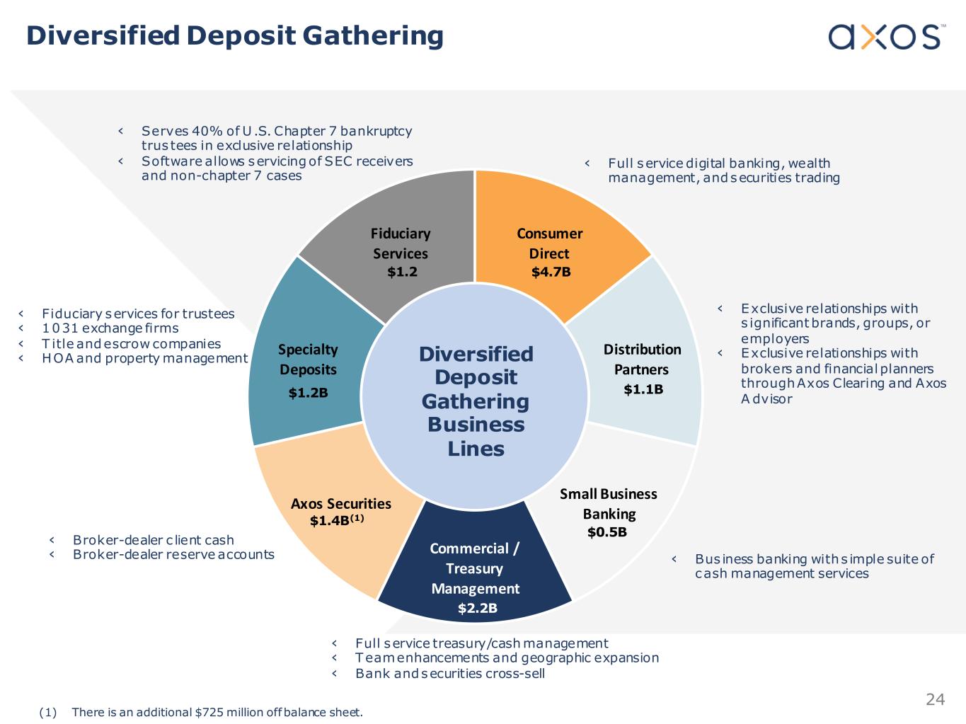 23 Axos Deposits Have National Reach With Customers in Every State Average Deposit Balance Number of Accounts Customer Base and Deposit Volume is Well Distributed Throughout the United States