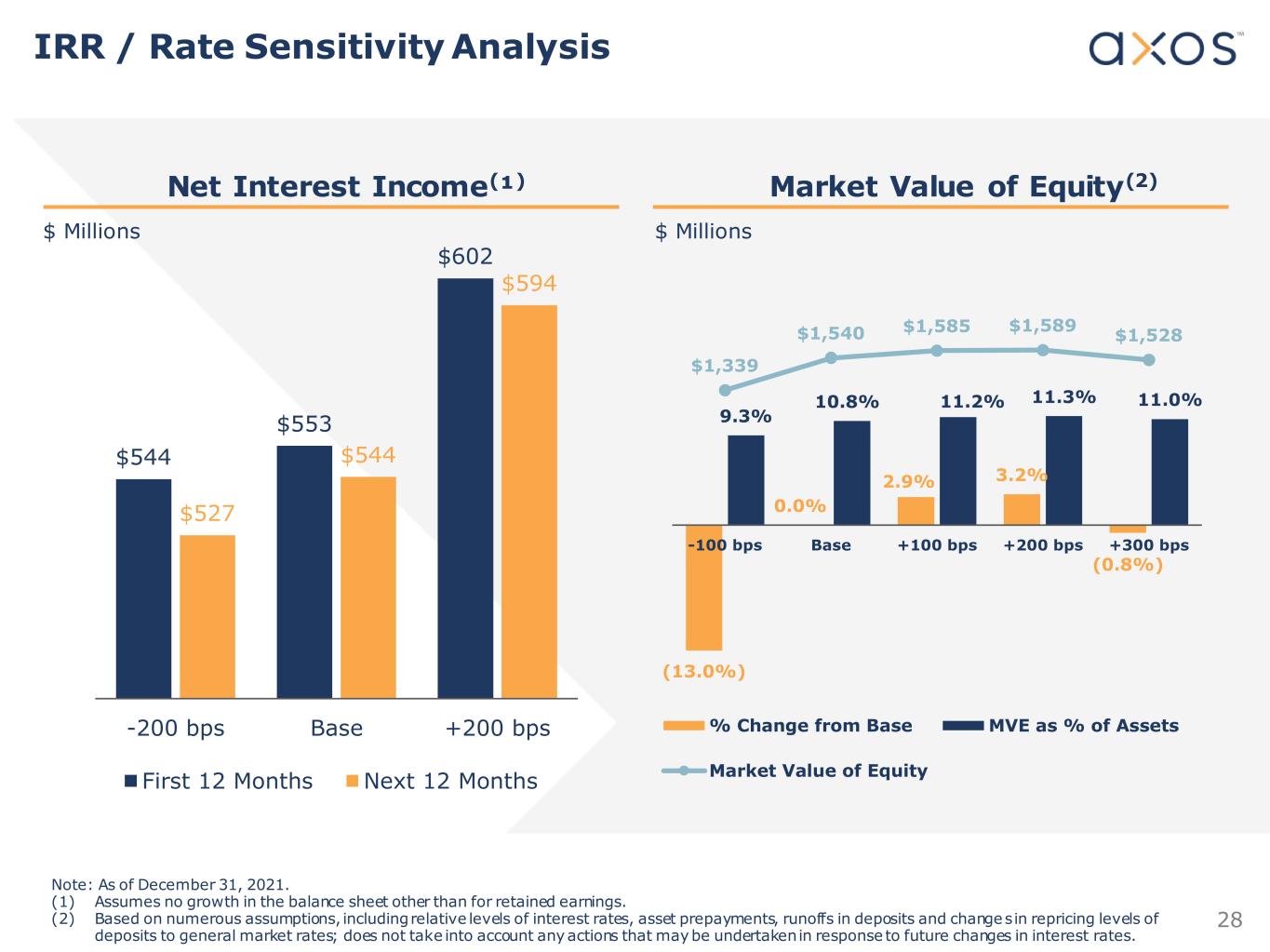 28 Net Interest Income(¹) Market Value of Equity(2) $ Millions $ Millions Note: As of December 31, 2021. (1) Assumes no growth in the balance sheet other than for retained earnings. (2) Based on numerous assumptions, including relative levels of interest rates, asset prepayments, runoffs in deposits and changes in repricing levels of deposits to general market rates; does not take into account any actions that may be undertaken in response to future changes in interest rates. $544 $553 $602 $527 $544 $594 -200 bps Base +200 bps First 12 Months Next 12 Months (13.0%) 0.0% 2.9% 3.2% (0.8%) 9.3% 10.8% 11.2% 11.3% 11.0% $1,339 $1,540 $1,585 $1,589 $1,528 -100 bps Base +100 bps +200 bps +300 bps % Change from Base MVE as % of Assets Market Value of Equity IRR / Rate Sensitivity Analysis