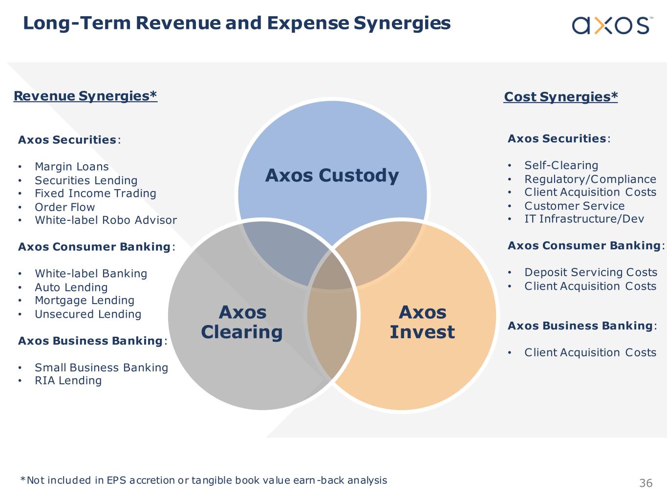 Adds a Scalable Technology Platform Axos Advisor Services Platform Overview Liberty Integrated Platform Dedicated Strategic Business Consultant Dedicated Client Service Advocate Supported by High-Touch, Best-In-Class Client Serv ice Liberty Platform Liberty Custody Web-based Highly scalable and secure Mobile capabilities Asset-based pricing APIs to 3rd party value – added CRM, planning, compliance, aggregation and other tools RIA client white labelled client portal, statements and mobile app • Prospecting • Proposal • Conversion • Onboarding • UMA • Rebalancing • Omnibus trading • Tax harvesting • Fractional shares • 3rd party investment managers • Diverse strategies • Fee billing • Mobile enabled • Investor portal • Performance • Statements • Private-labeling • Custom branding No lending of c lient securities FDIC insurance for up to $500K Supports alternative / non-tradeable assets Portfolio Management & Trading Managed Investment Solutions Growth Tools Operational Tools Reporting + Analytics Helping advisors drive efficiencies so they can focus on building and sustaining their long -term client relationships Dedicated operations team Access to executive management team, trainers, business consultants, technology experts, and onboarding teams 35